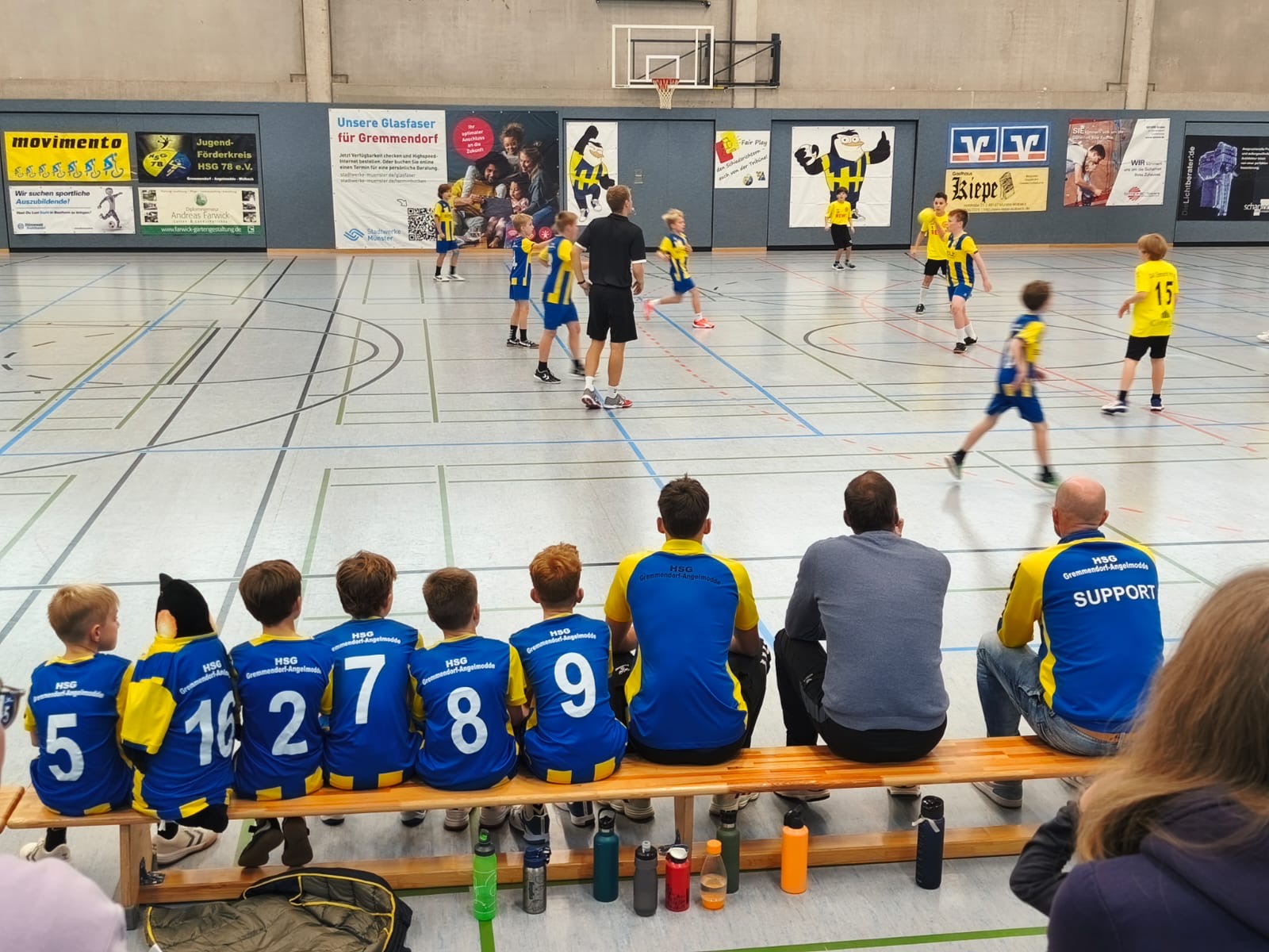 Von Beginn an war deutlich spürbar, dass den Jungs vor dem ersten Saisonspiel die Nervosität anzumerken war. Insbesondere in den ersten zehn Minuten wirkte das Spieltempo etwas hektisch – Pässe wurden ungenau gespielt, Entscheidungen einen Tick zu zaghaft getroffen. Doch mit voranschreitender Spielzeit fanden unsere Nachwuchs-Handballer zunehmend ins Spiel und übernahmen zusehends die Kontrolle. Zur Halbzeitpause stand es bereits 14:7 für die HSG Gremmendorf/Angelmodde. Eine klare Führung, die das Fundament für die zweite Halbzeit legte.