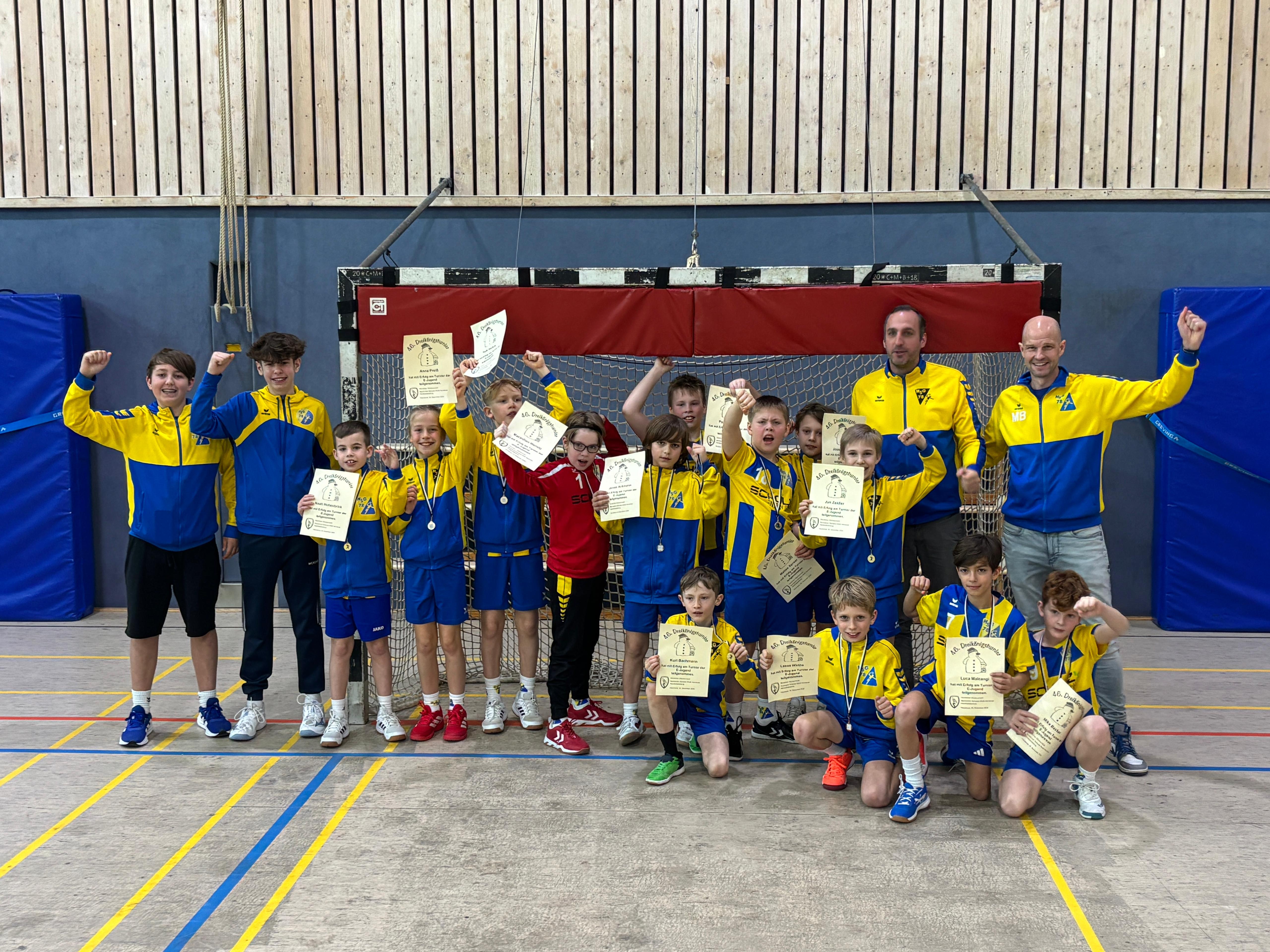 Mit einer beeindruckenden Leistung hat die E1-Jugend der HSG Gremmendorf/Angelmodde das Dreikönigsturnier in Havixbeck am 30.12.2025 gewonnen und damit einen perfekten Jahresabschluss gefeiert. In vier Spielen feierte das Team vier Siege und zahlreiche SpielerInnen konnten Tore erzielen und alle bekamen ausreichend Spielzeit. Von Beginn an zeigte die Mannschaft großen Einsatz (vor allem in der starken Manndeckung), Spielfreude und Teamgeist. Die Ergebnisse sprechen für sich: